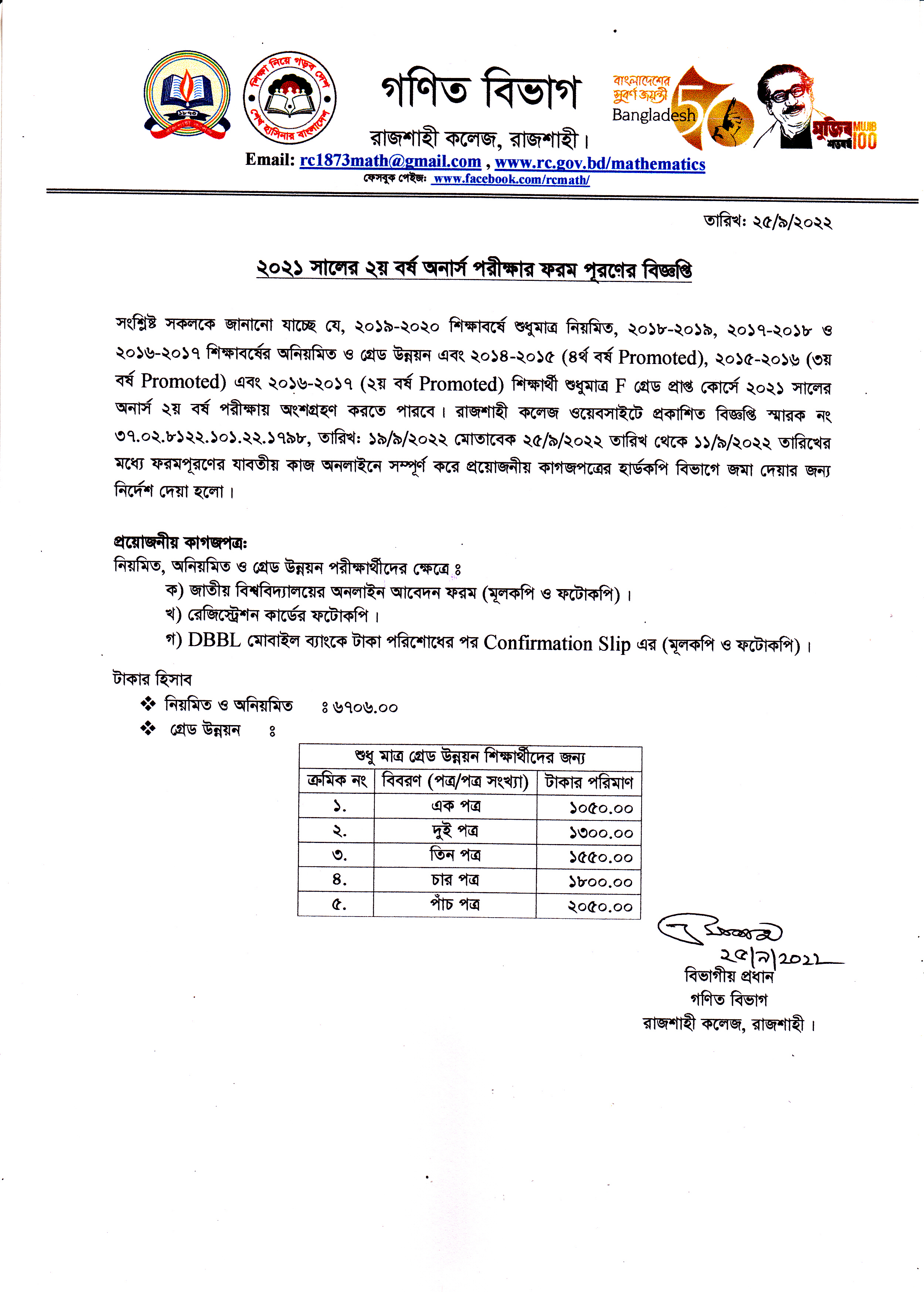 | ২০১৬ সালের ৪র্থ বর্ষ সম্মান পরীক্ষার ফরম পূরণের টাকার হিসাব | 10-06-2017 | Download |