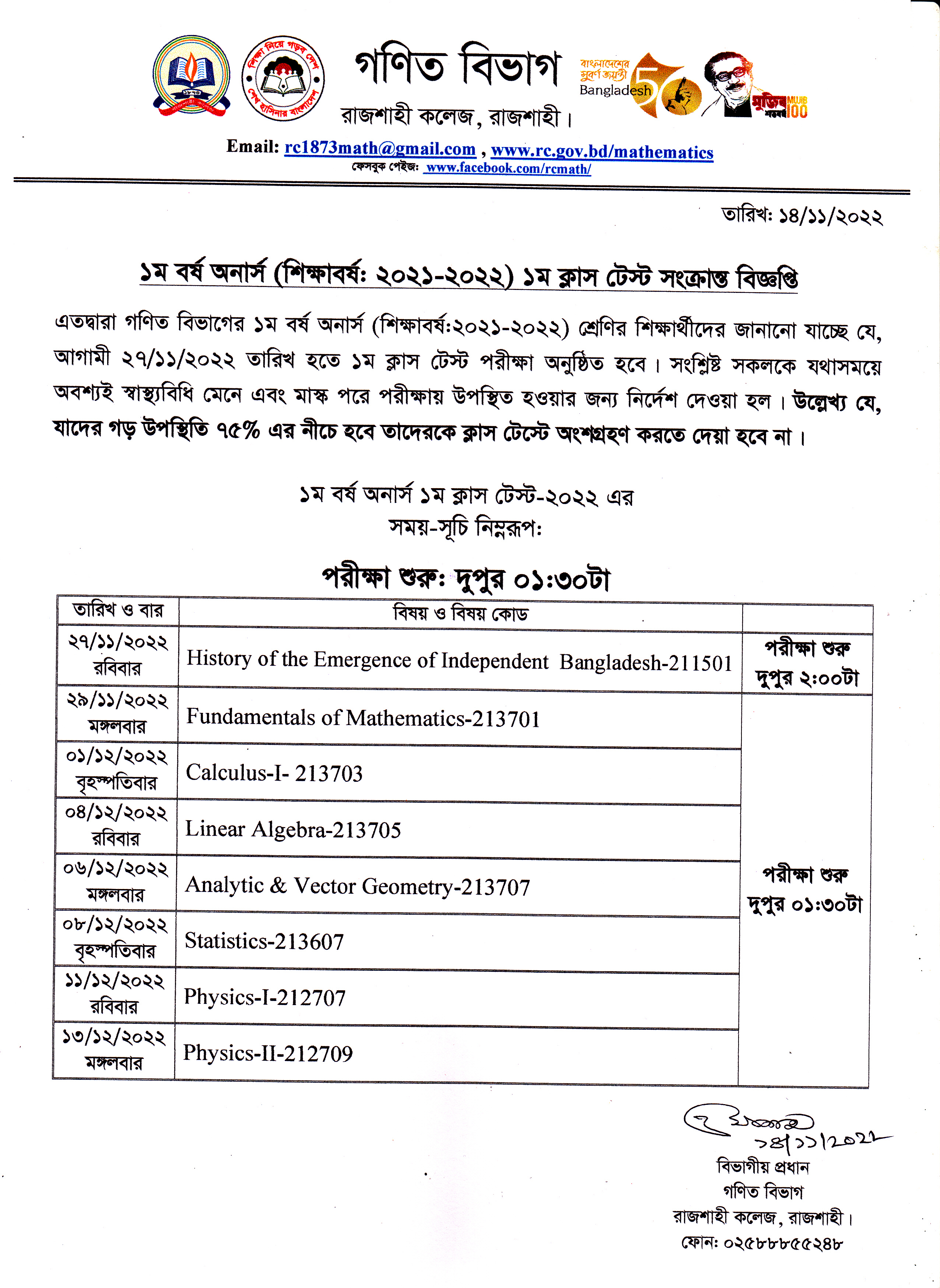 | ১ম বর্ষ সম্মান ( শিক্ষাবর্ষ: ২০১৬-২০১৭ ) শ্রেণির ২য় ক্লাস টেস্ট এর সময় সূচি | 13-05-2017 | Download |