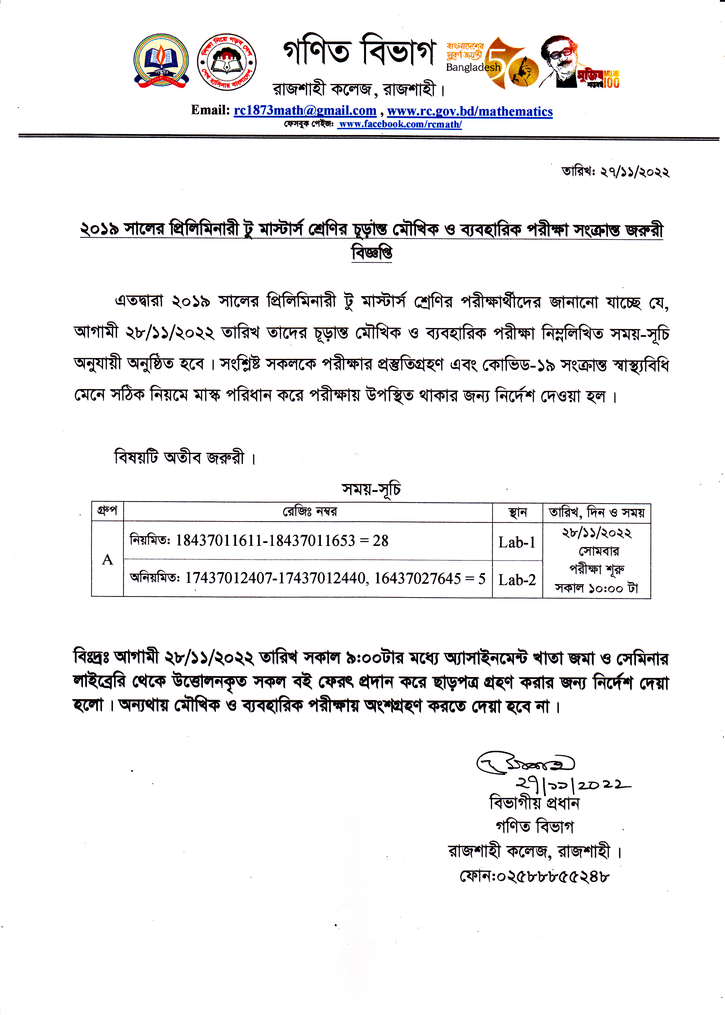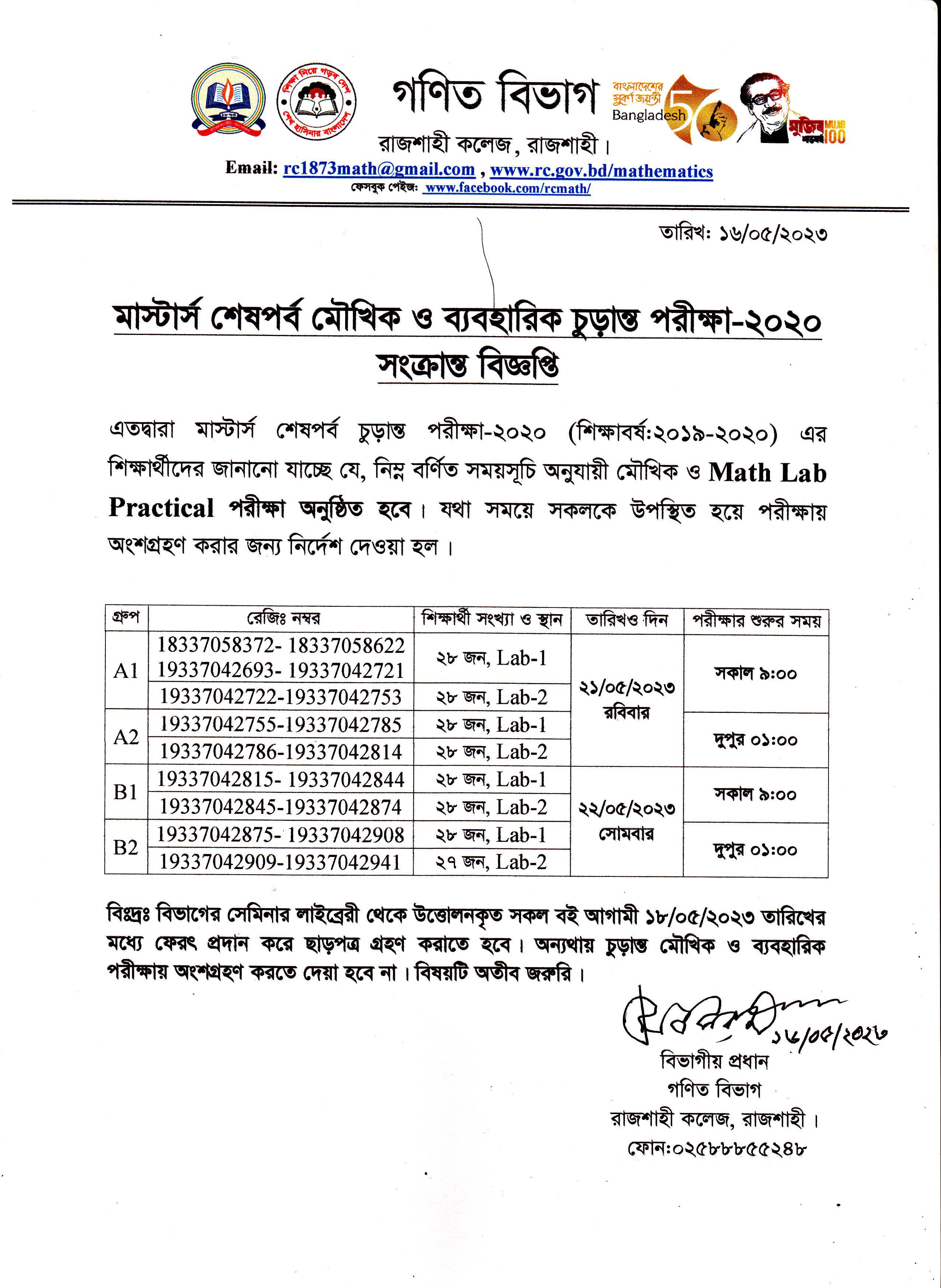 | মাস্টার্স ১ম পর্ব (২০১৩-২০১৪) এর মৌখিক পরীক্ষা-২০১৪ সময় সূচি | 21-08-2016 | Download |