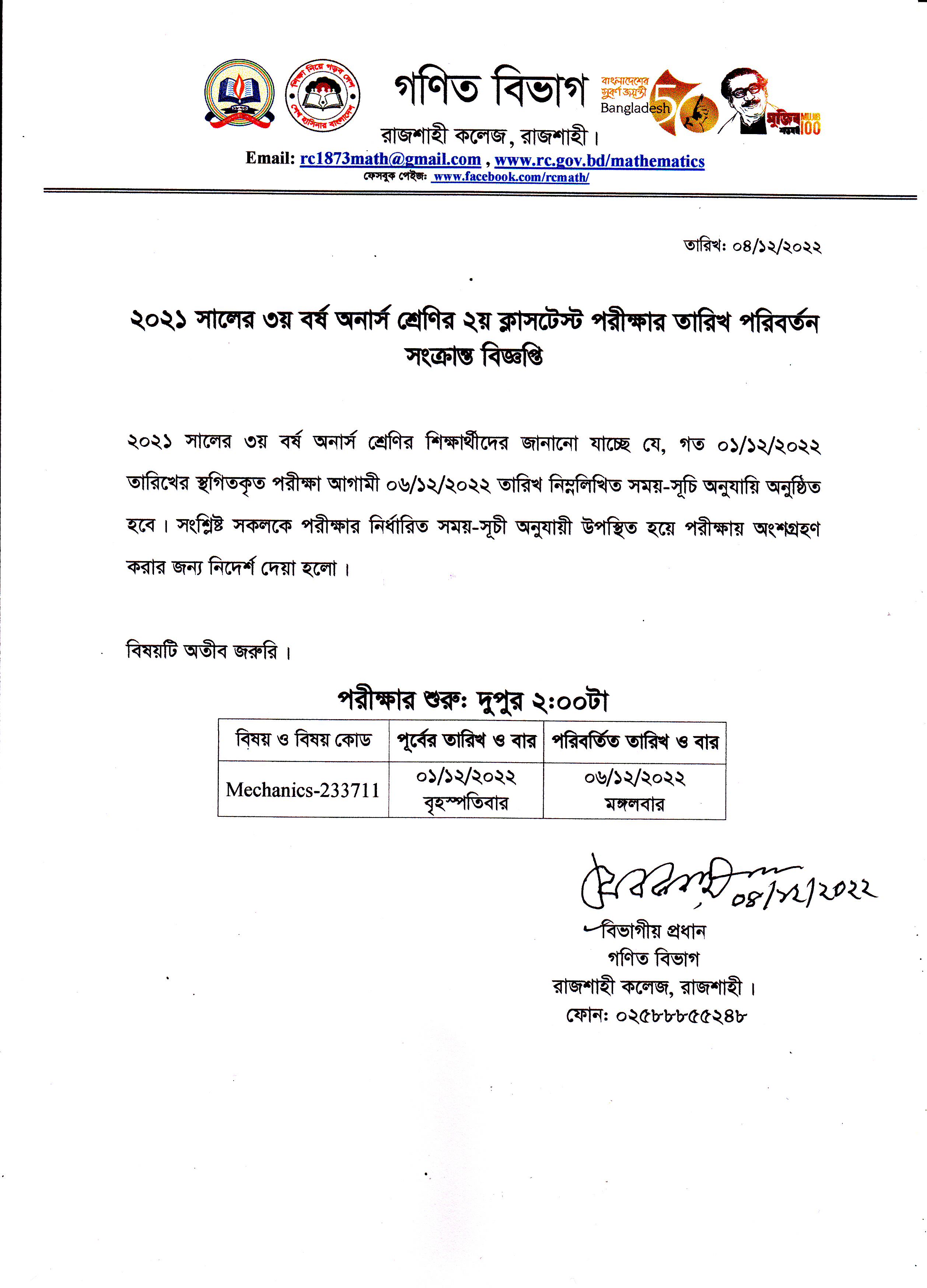 | সংশোধিত ২য় বর্ষ সম্মান ( শিক্ষাবর্ষ: ২০১৫-২০১৬ ) শ্রেণির ২য় ক্লাস টেস্ট এর সময় সূচি | 23-07-2017 | Download |