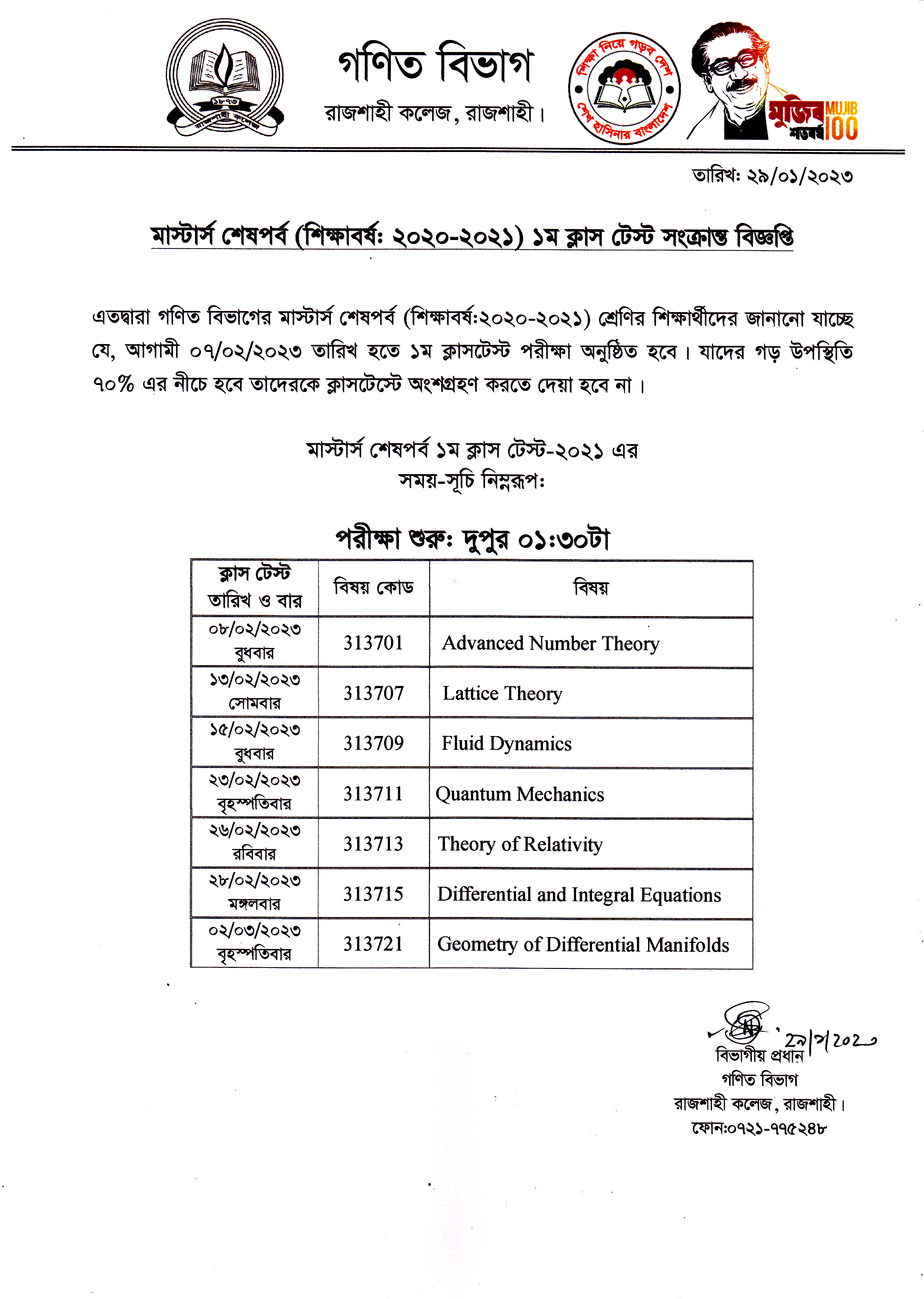 | ২০১৫-২০১৬ শিক্ষাবর্ষে মাস্টার্স শেষ পর্ব (নিয়মিত) ১ম ক্লাস টেস্ট-২০১৬ এর সময়সূচি | 27-01-2018 | Download |
