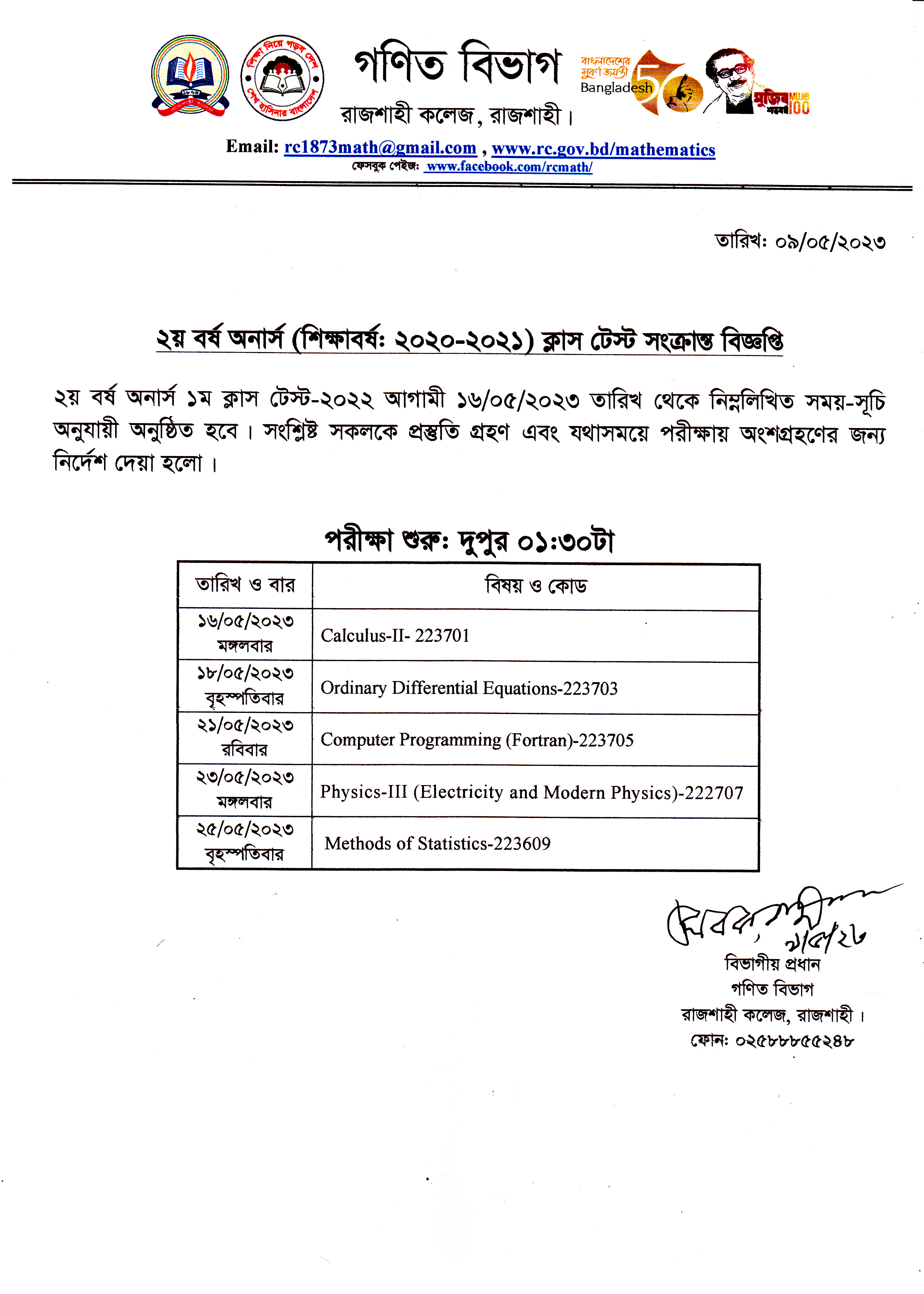 | ২য় বর্ষ সম্মান ( শিক্ষাবর্ষ: ২০১৫-২০১৬ ) শ্রেণির ২য় ক্লাস টেস্ট এর সময় সূচি | 24-05-2017 | Download |