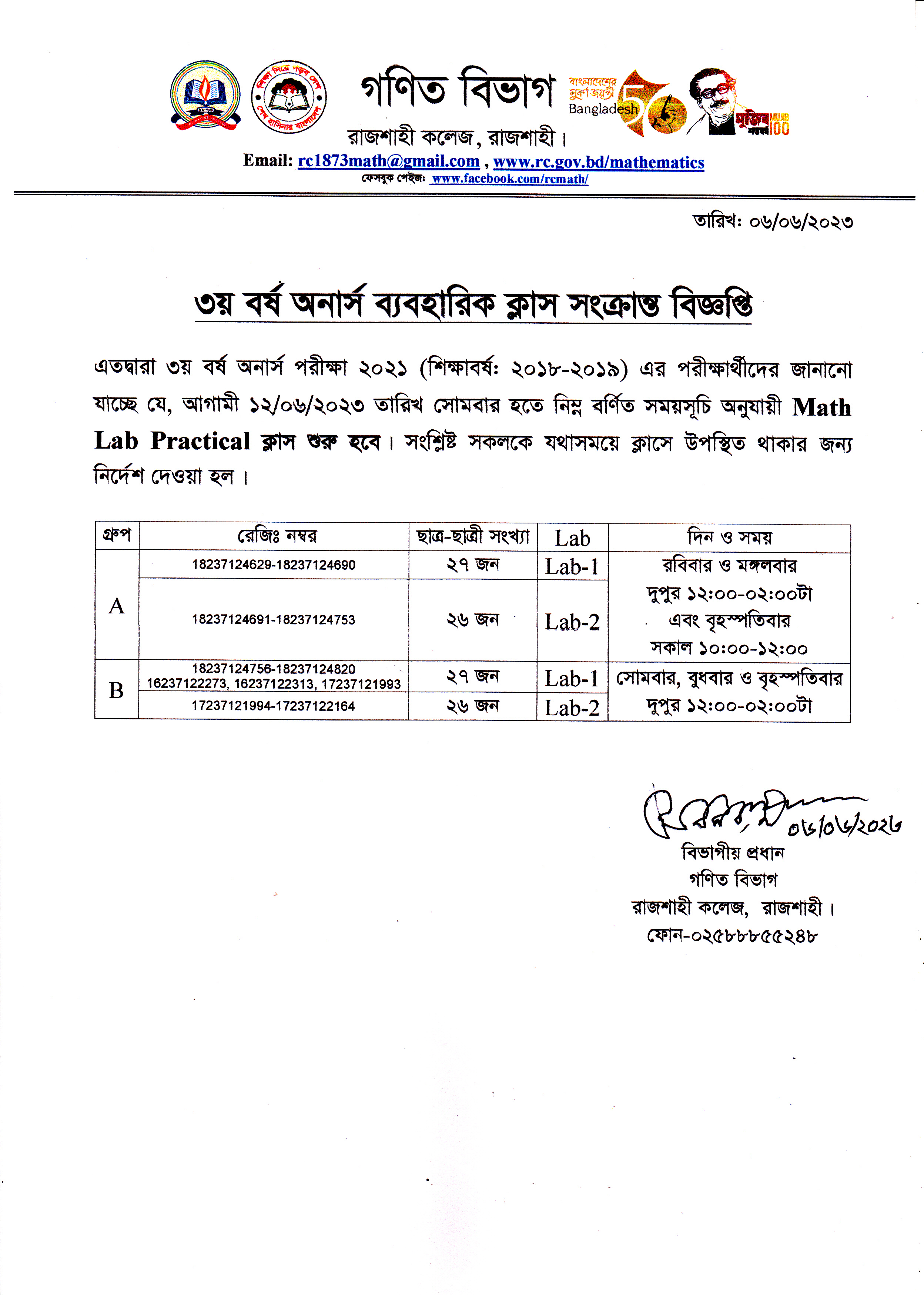 | ১ম বর্ষ সম্মান ( শিক্ষাবর্ষ: ২০১৬-২০১৭ ) শ্রেণির ৩য় ক্লাস টেস্ট এর সময় সূচি | 08-07-2017 | Download |