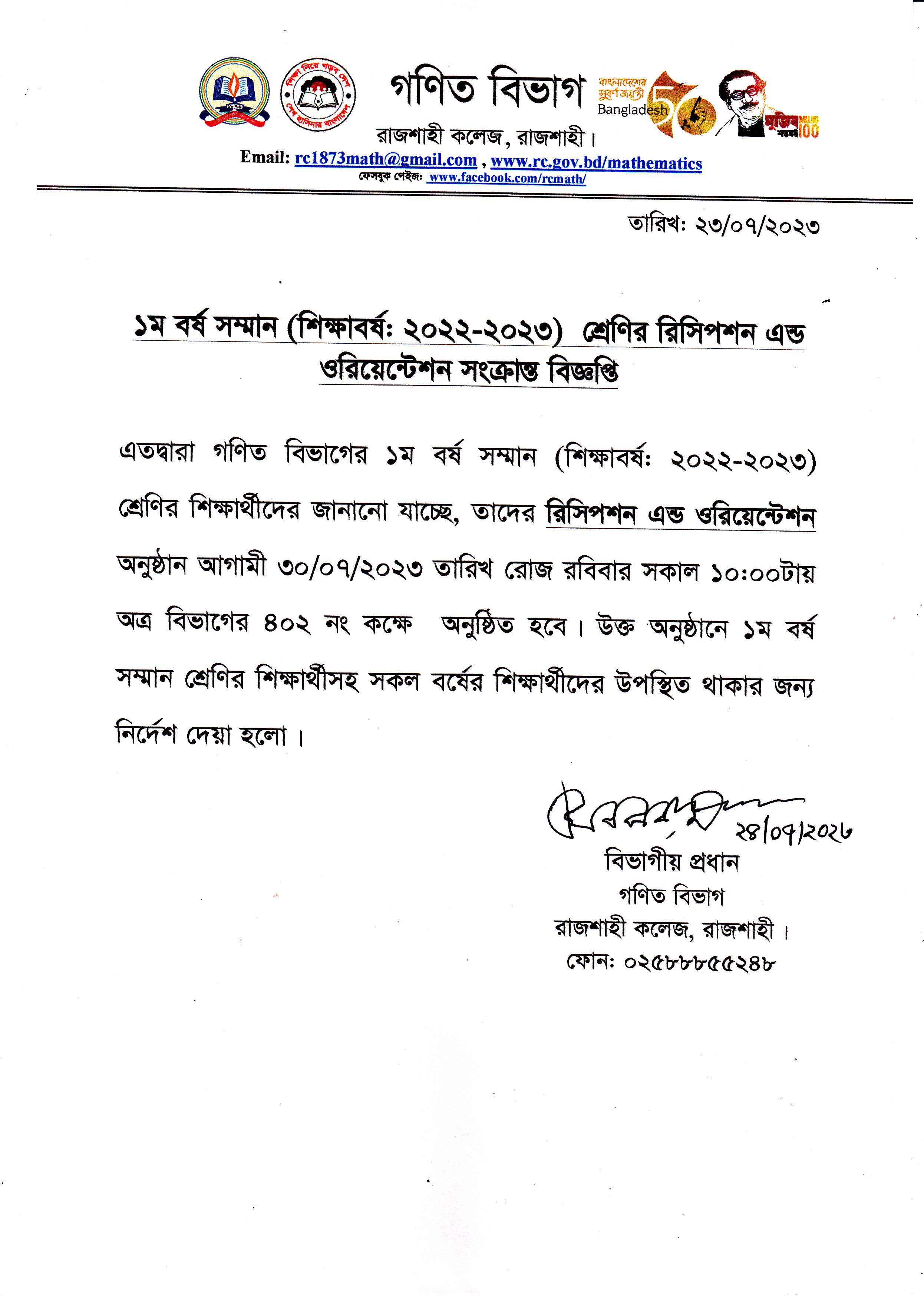| ১ম বর্ষ সম্মান ( শিক্ষাবর্ষ: ২০১৬-২০১৭ ) শ্রেণির রিসিপশন এন্ড ওরিয়েন্টেশন সংক্রান্ত | 16-01-2017 | Download |