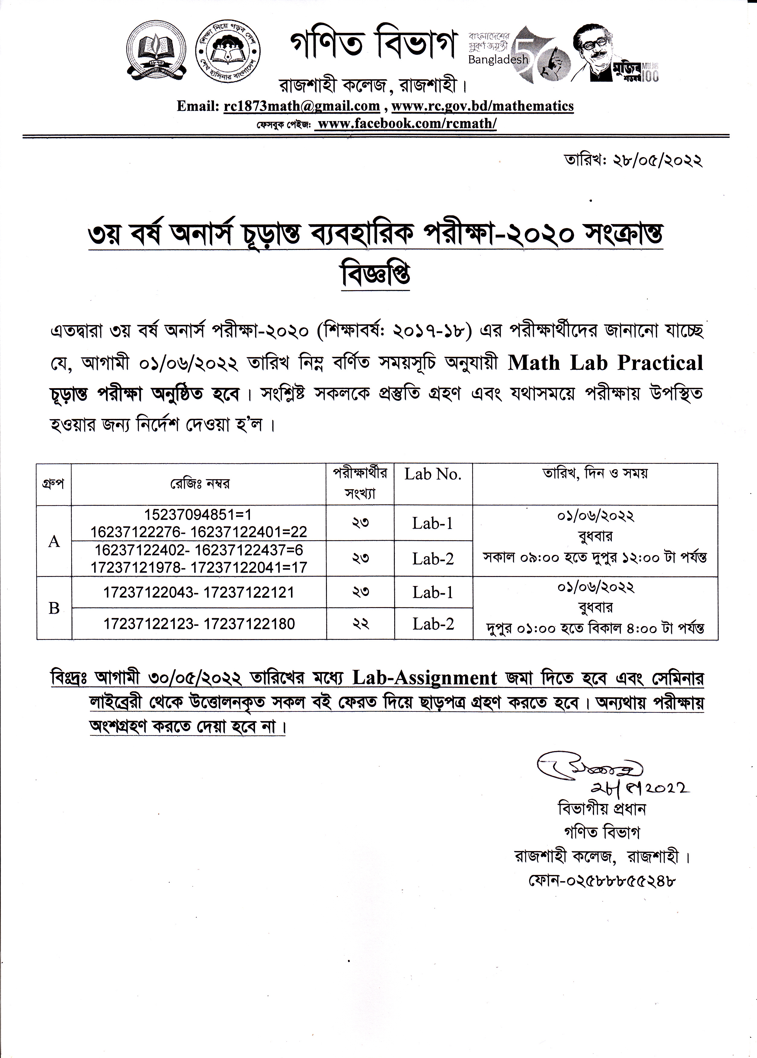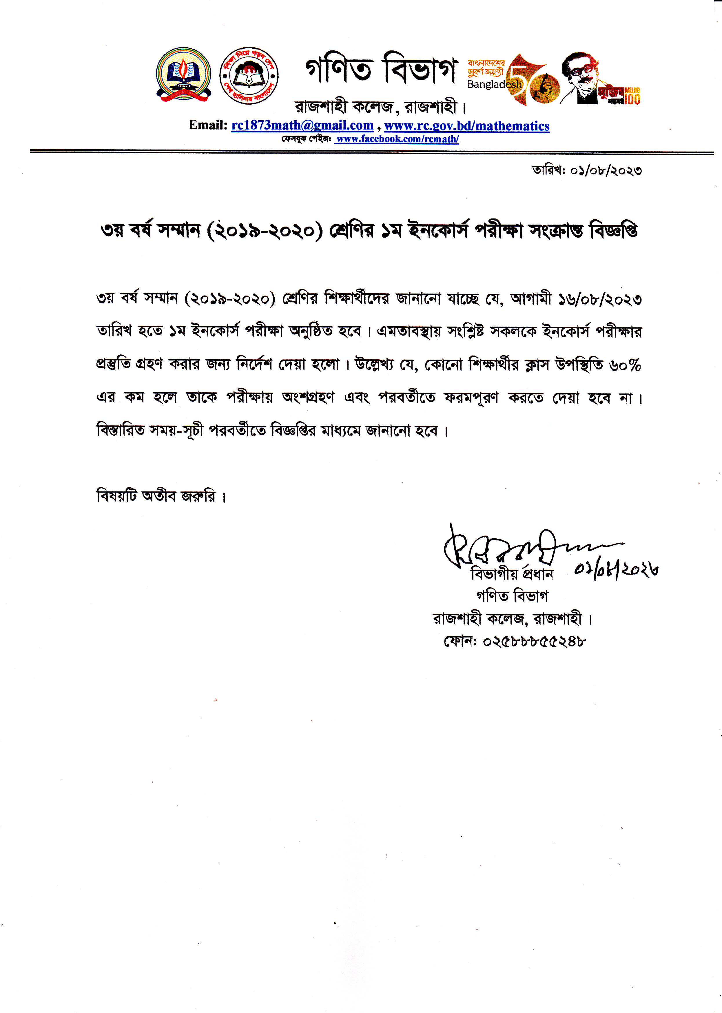 | অনার্স ১ম বর্ষ সম্মান (২০১৫-২০১৬) ৩য় ক্লাস টেস্ট- ১৬ এর বিজ্ঞপ্তি | 24-07-2016 | Download |