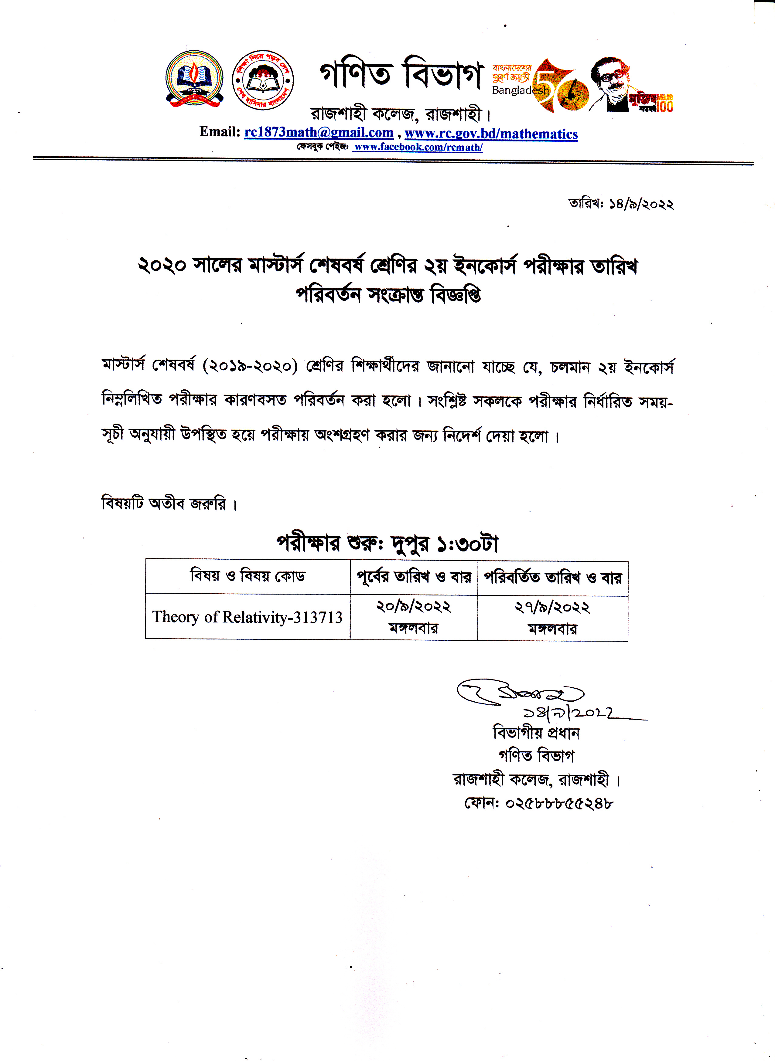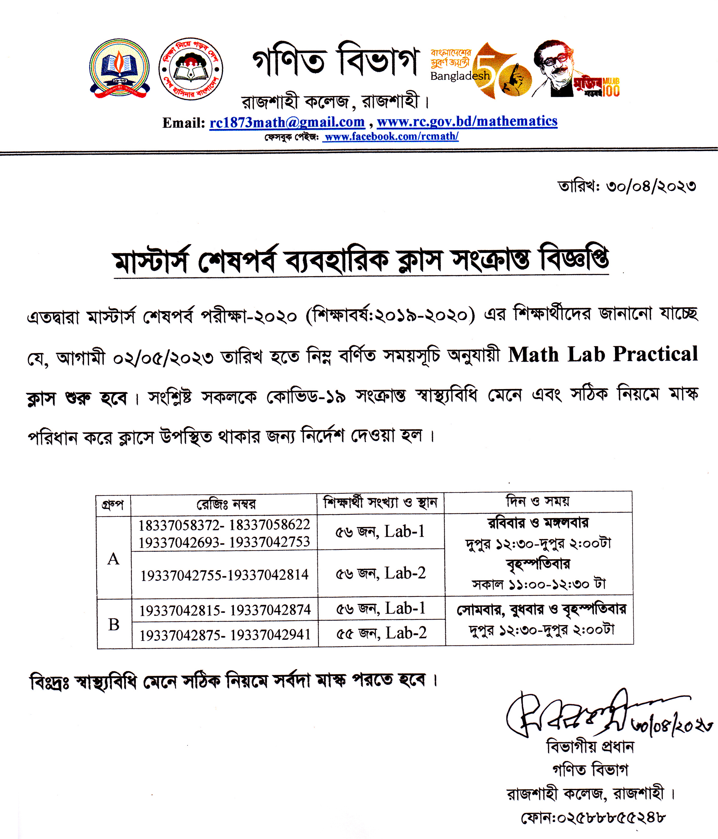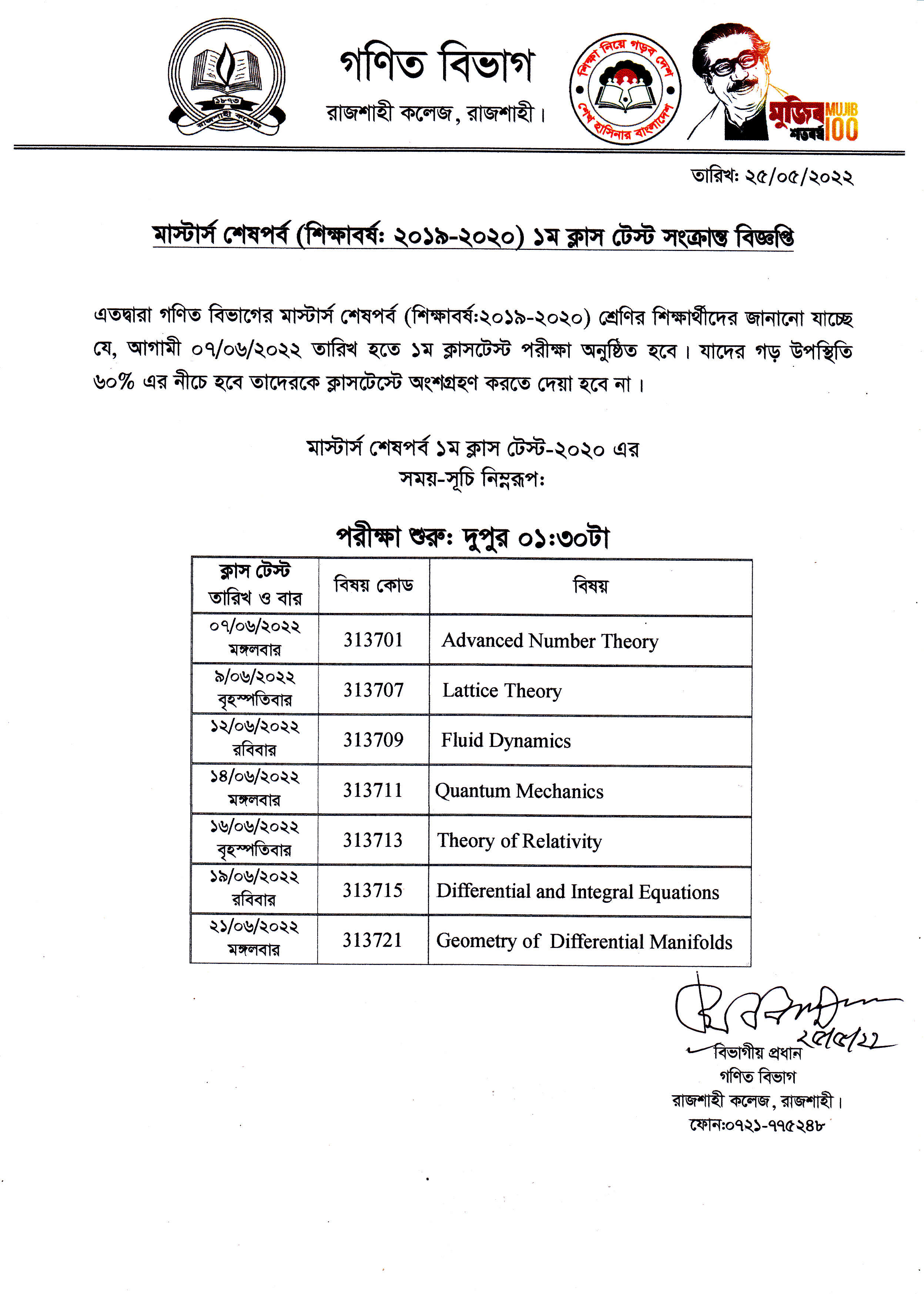 | ২০১৪-২০১৫ শিক্ষাবর্ষে মাস্টার্স শেষ পর্ব (নিয়মিত) ১ম ক্লাস টেস্ট-২০১৫ এর সময়সূচি | 17-05-2017 | Download |