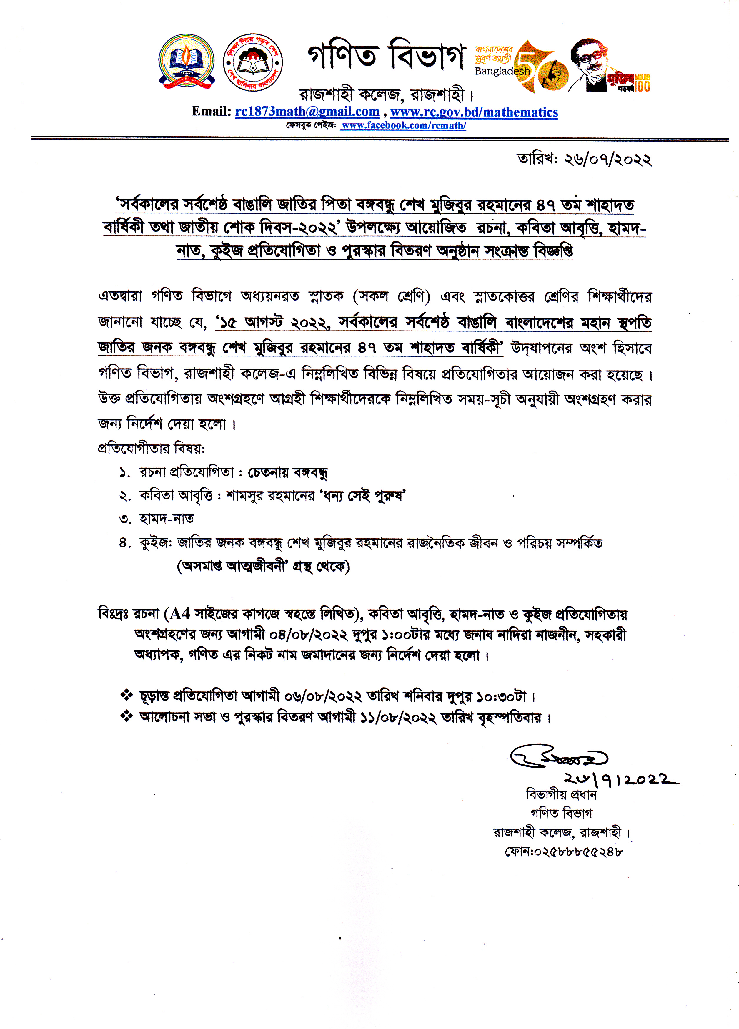 | রাজশাহী কলেজ রেড ক্রিসেন্ট ইউনিট গঠন সংক্রান্ত বিজ্ঞপ্তি। | 05-03-2018 | Download |