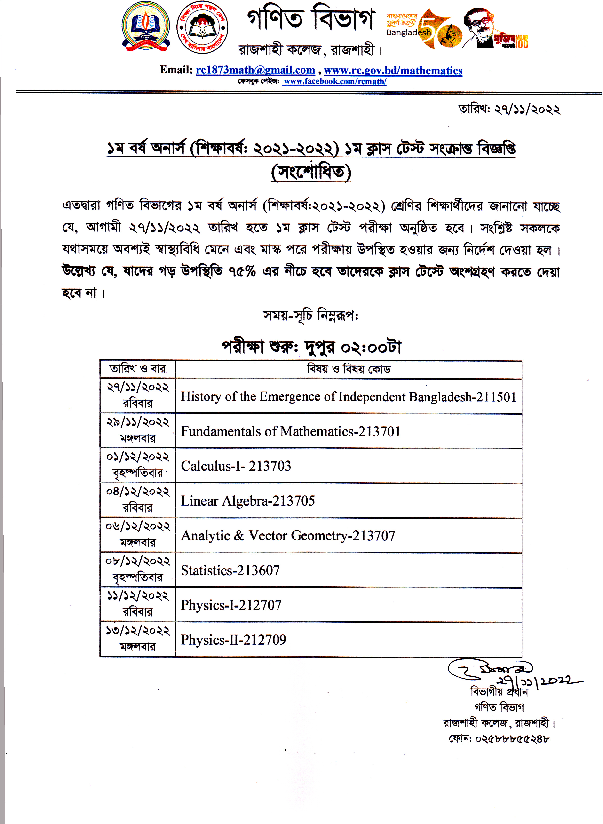 | অনার্স ১ম বর্ষ সম্মান (২০১৫-২০১৬) ২য় ক্লাস টেস্ট- ১৬ এর বিজ্ঞপ্তি | 08-05-2016 | Download |