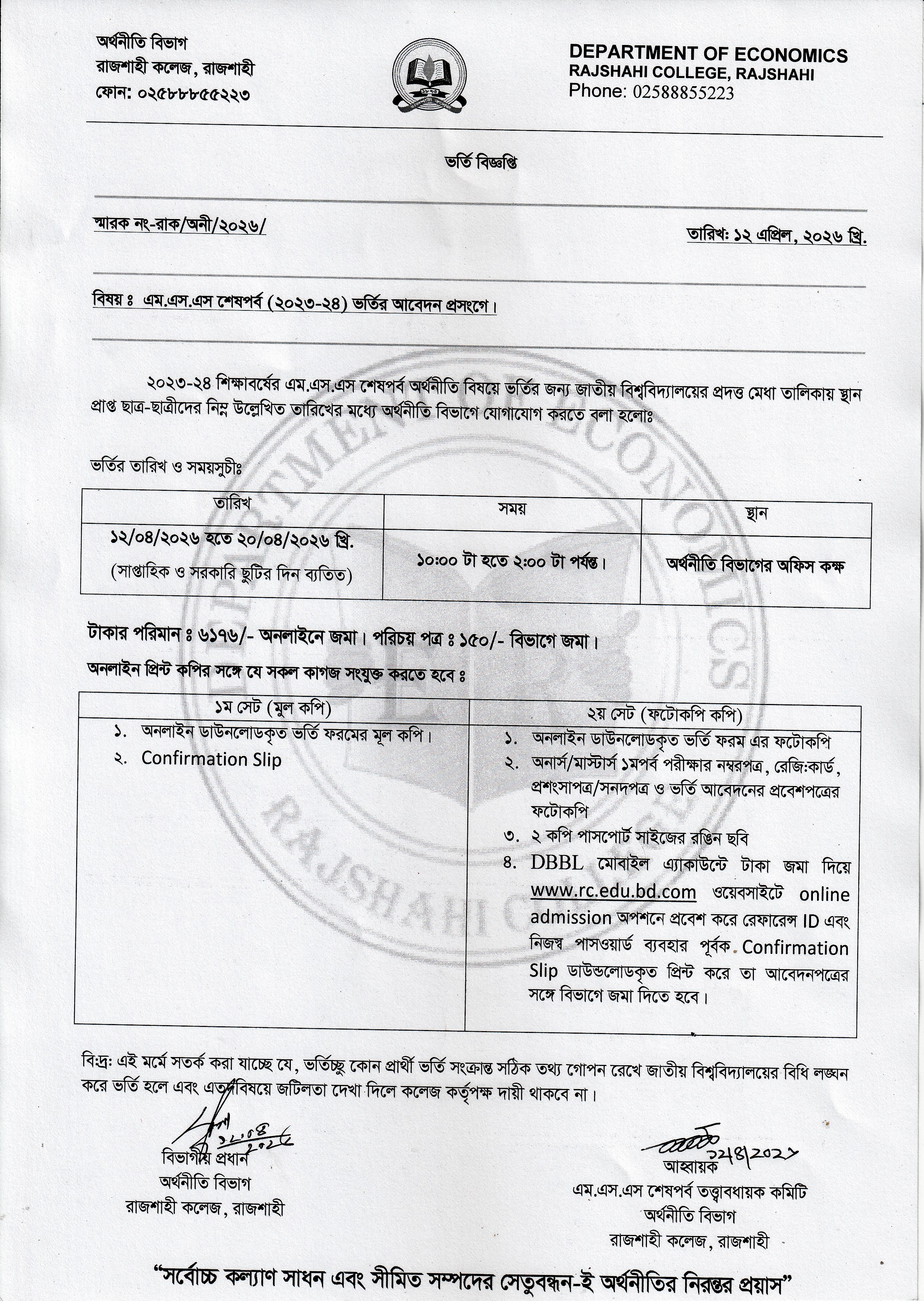 অফিসিয়াল বিজ্ঞপ্তি, আদেশ ও সার্কুলার