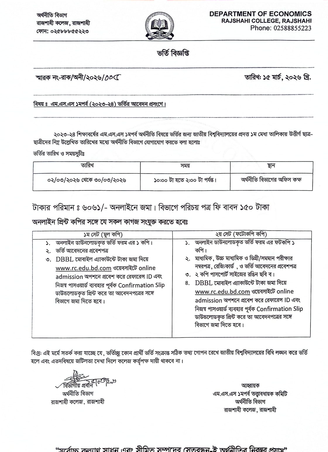 A good number of students study Economics at Higher Secondary level too. The students of the Department have the privilege to use both the central library of Rajshahi College and the Seminar library of the Department. Classes of this department are well-equipped with smart boards with internet connectivity, sound system and other necessary learning aids. Furthermore, the department has introduced “Student Centered Learning” (SCL) from its 84th batch of undergraduate students (Session: 2018-19). All the computers of the Department have got broad-band internet connections. The Department organizes different scholarly activities such as seminars and workshops for the students. In addition to all of these facilities, students of this department have privileged to use ICT lab facilities managed by ICT Department of this college. Honours and Masters Result of this department has been quite satisfactory since inception of the subject. Department boast a legacy of an outstanding activities of the teachers in various extracurricular activities like music, drama, recitation, excursion, debate, and seminar sports etcetera. A good number of students after acquiring brilliant result at Honours and Masters Level from this department are employed in various responsible posts at different capacities in different government and non-government organizations both in national and international level.
