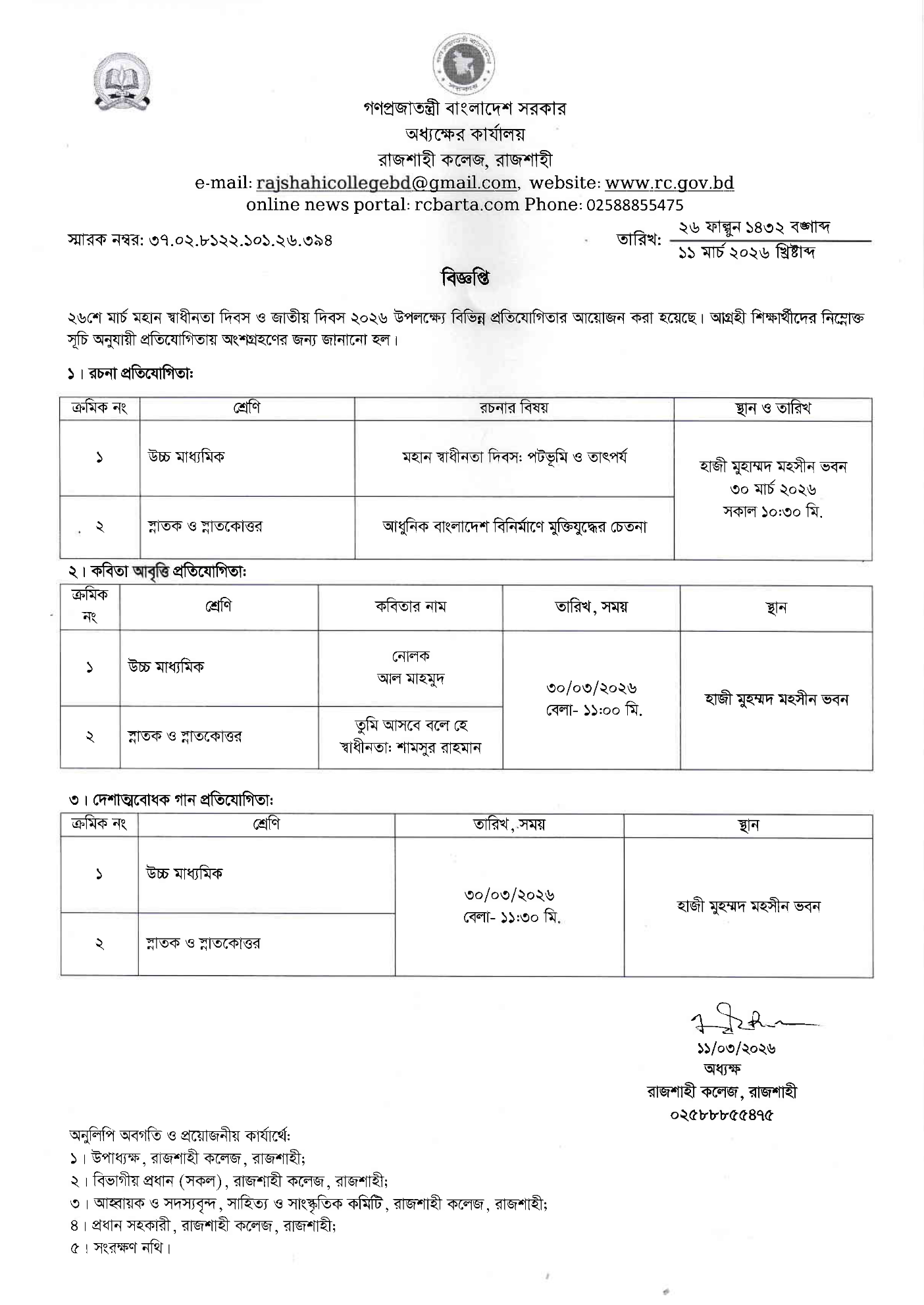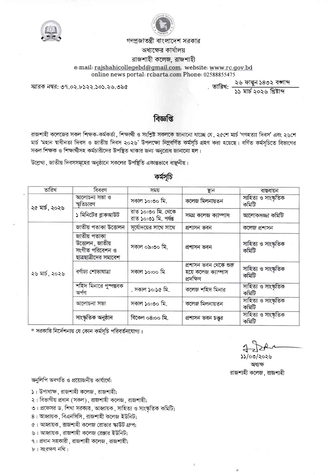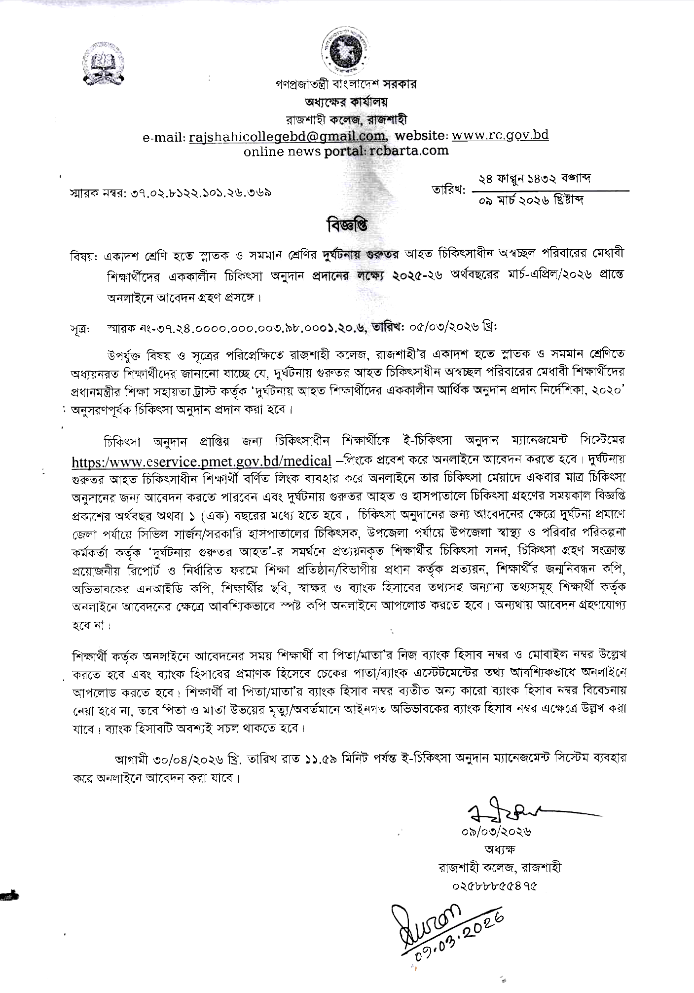 | 03. | Dr. Mst. Zamilla Khatun (013365) | Associate Professor | 24 | 08 | 01712206723 |