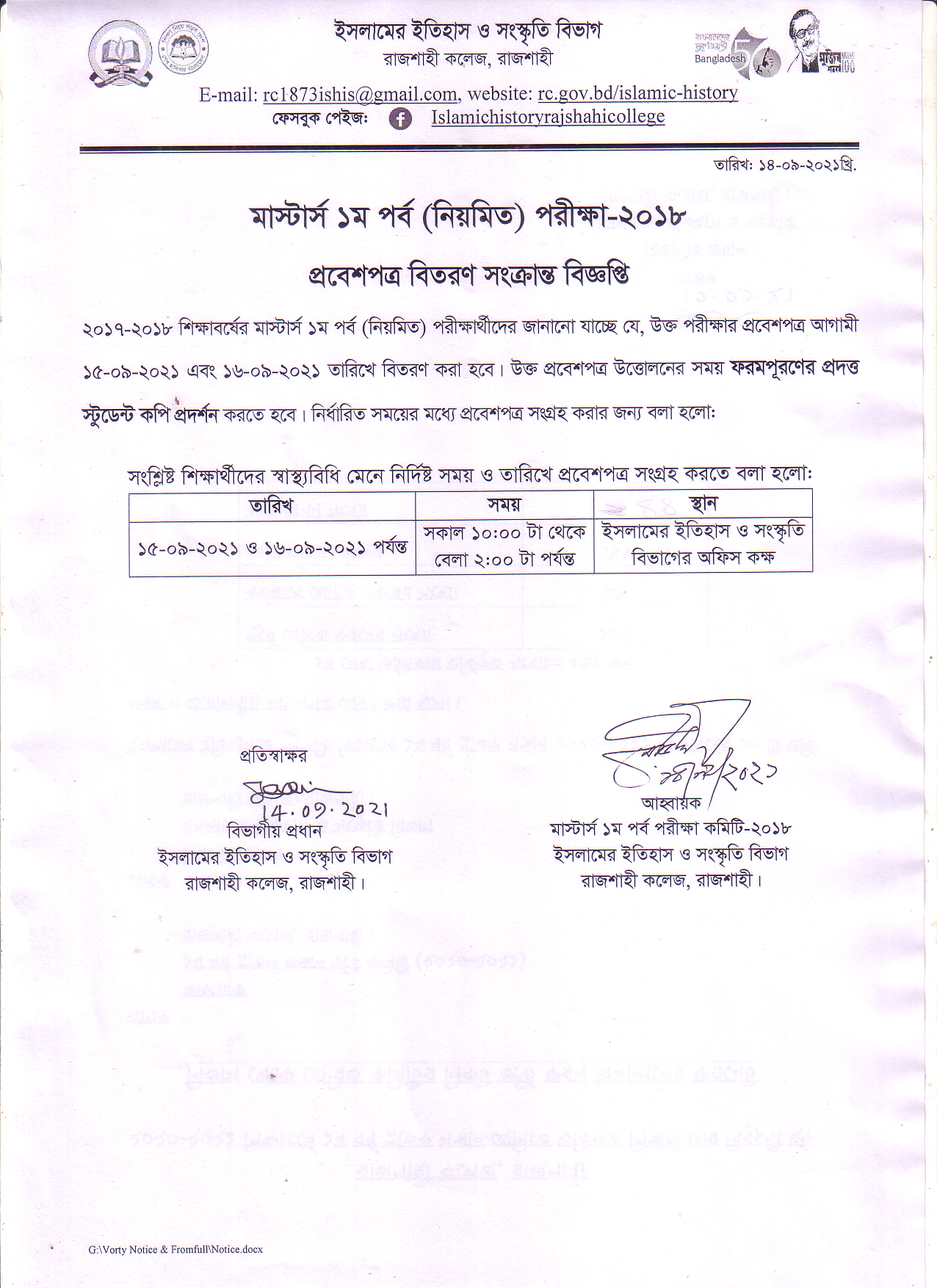| অনার্স ১ম বর্ষ (২০২১-২০২২) শ্রেণির প্রবেশপত্র বিতরণ সংক্রান্ত বিজ্ঞপ্তি | 09-10-2023 | Download |