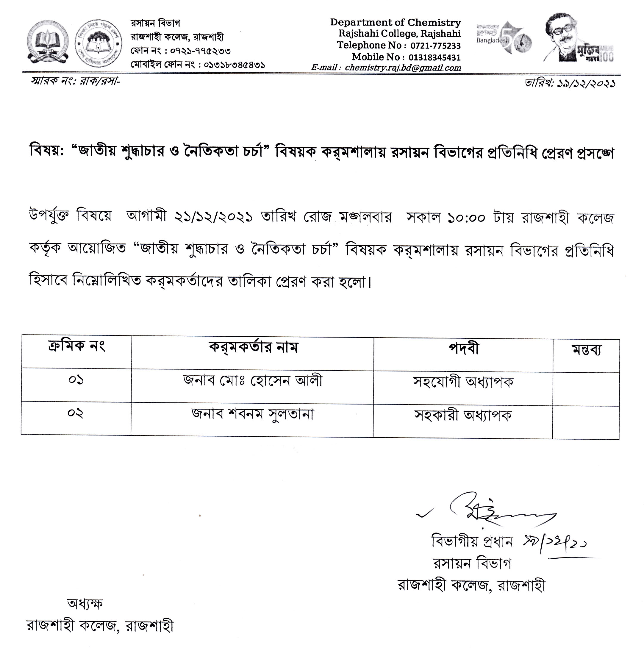 | ২০১৯ সালের অনার্স ১ম বর্ষ পরীক্ষার ফরমপূরণ সংক্রান্ত বিজ্ঞপ্তি। | 10-05-2019 | Download |