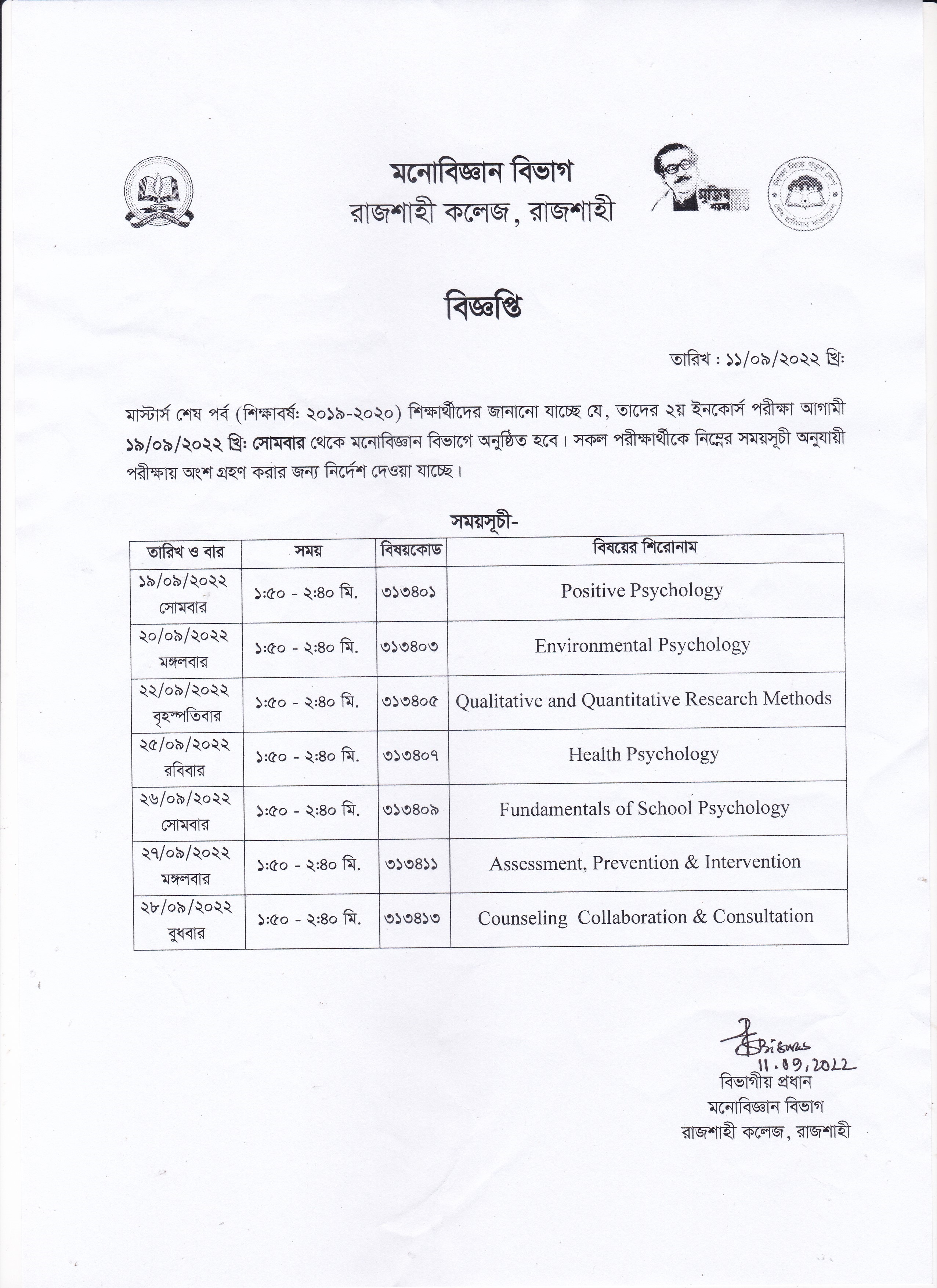 | মনোবিজ্ঞান বিভাগের ক্লাস রুটিন | 31-08-2022 | Download |