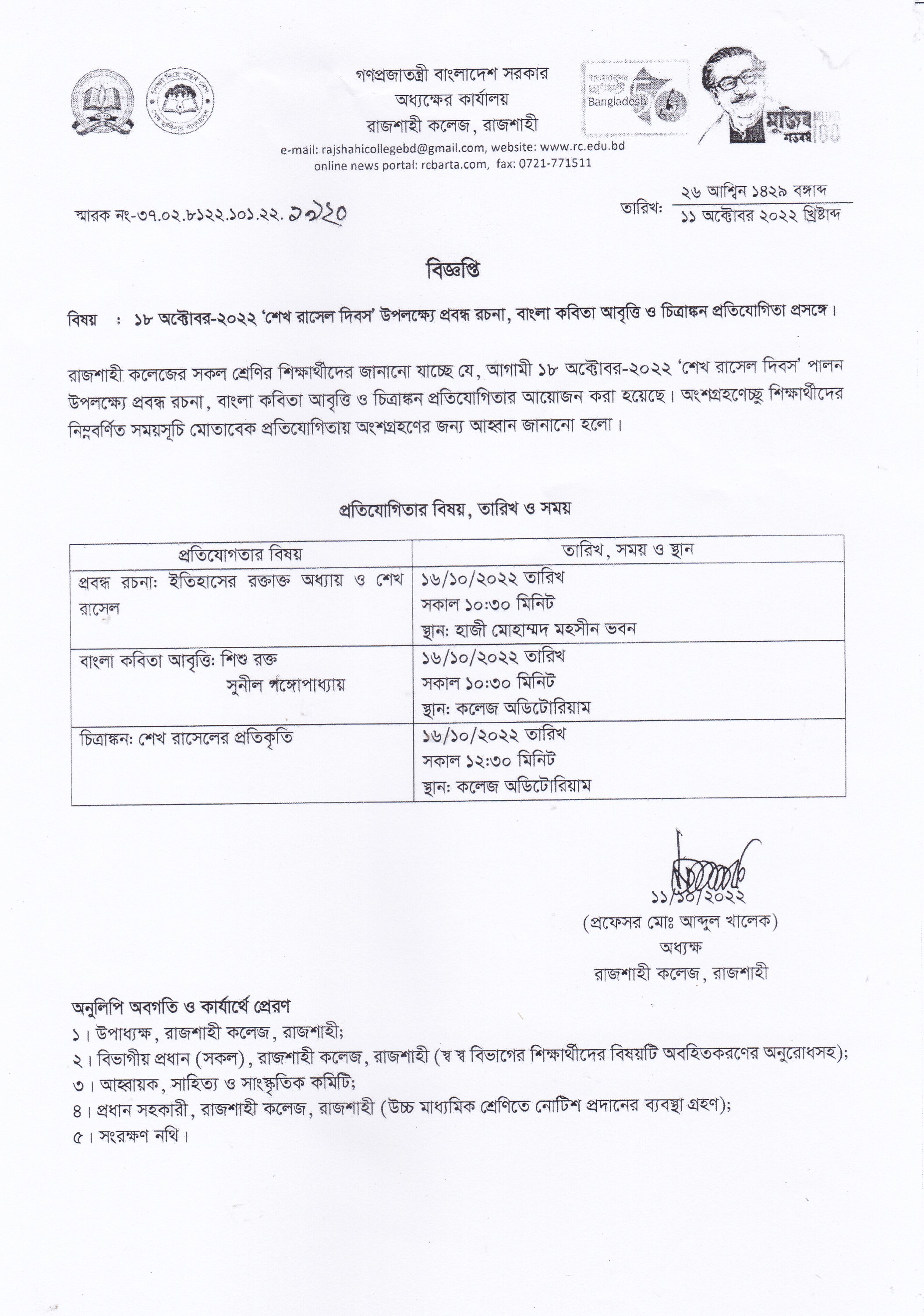 | ১৮ অক্টোবর-২০২২ ‘শেখ রাসেল দিবস’ উপলক্ষ্যে প্রবন্ধ রচনা, বাংলা কবিতা আবৃত্তি ও চিত্রাঙ্কন প্রতিযোগিতা প্রসঙ্গে | 11-10-2022 | Download |